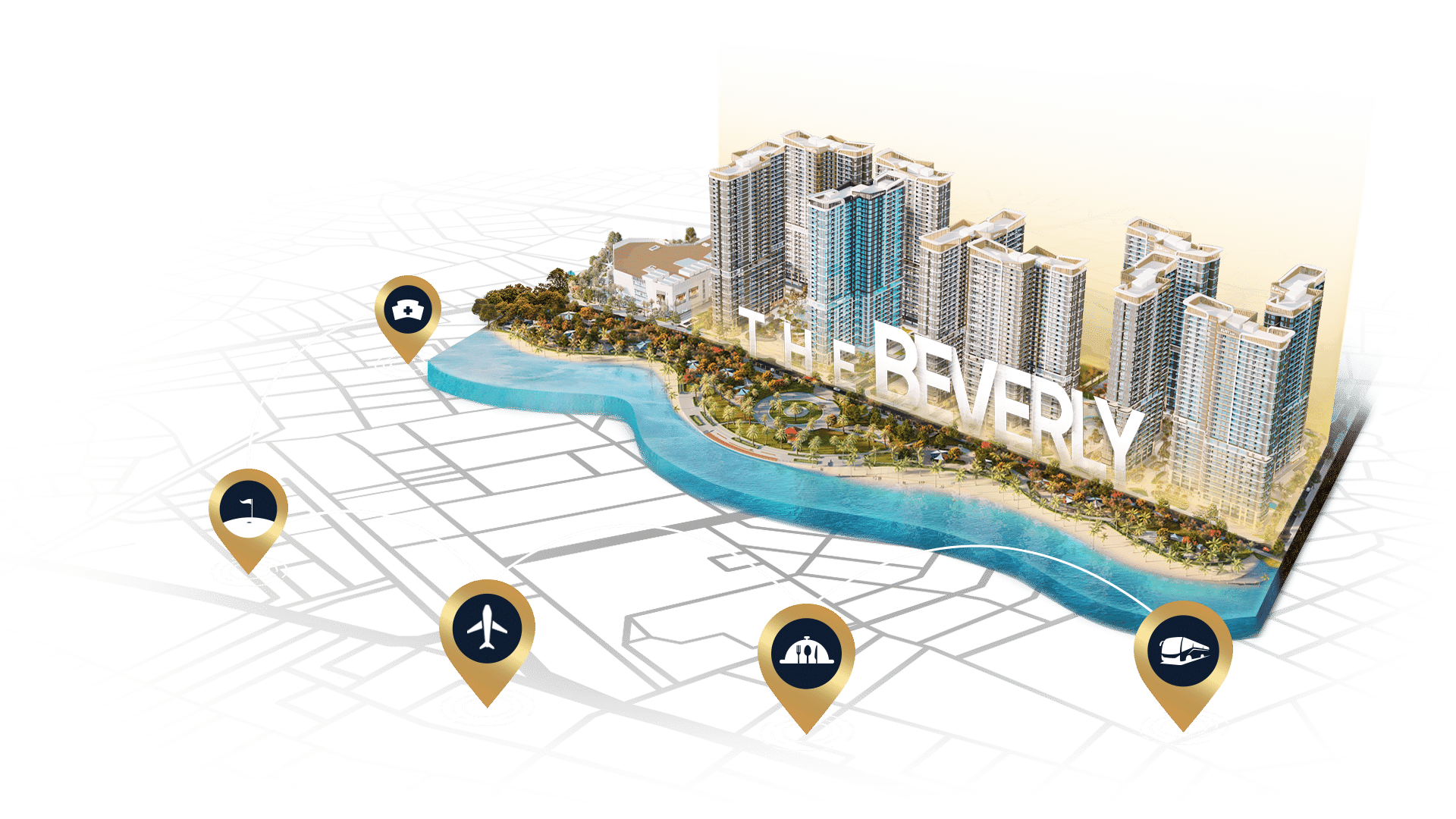 Phân khu căn hộ The Beverly được ví như “hoa hậu” của Vinhomes Grand Park khi sở hữu vị trí trung tâm, ngay cạnh Vincom Mega Mall, đối diện công viên chủ đề VinWonders.